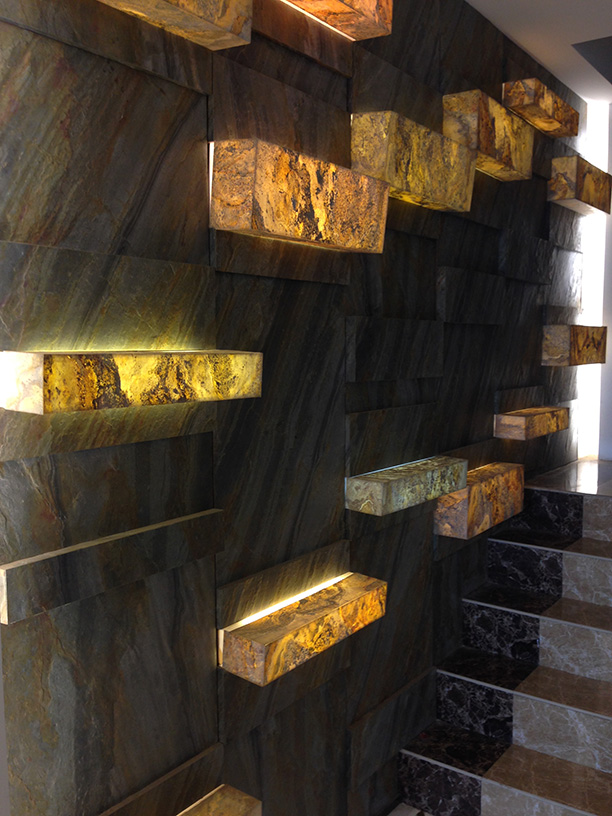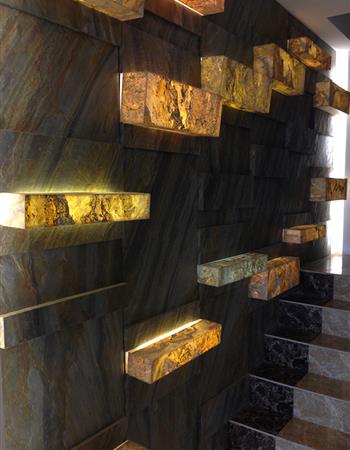 The Slate is an innovative real stone veneer that consists of a thin natural stone layer and a support backing reinforced with fiberglass or cotton.